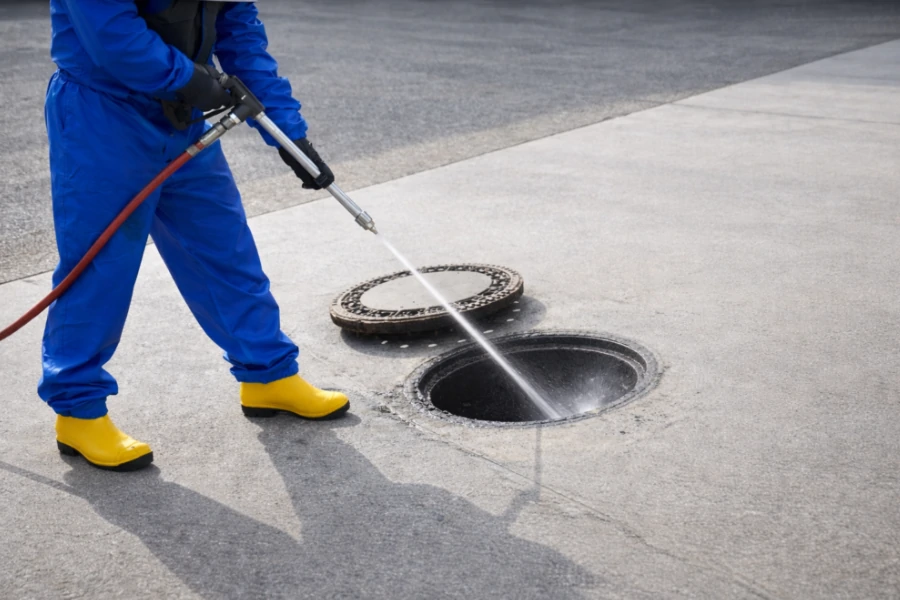 Limpeza profunda de tubulações com jatos de alta pressão. Ideal para remoção de gordura, resíduos e incrustações.